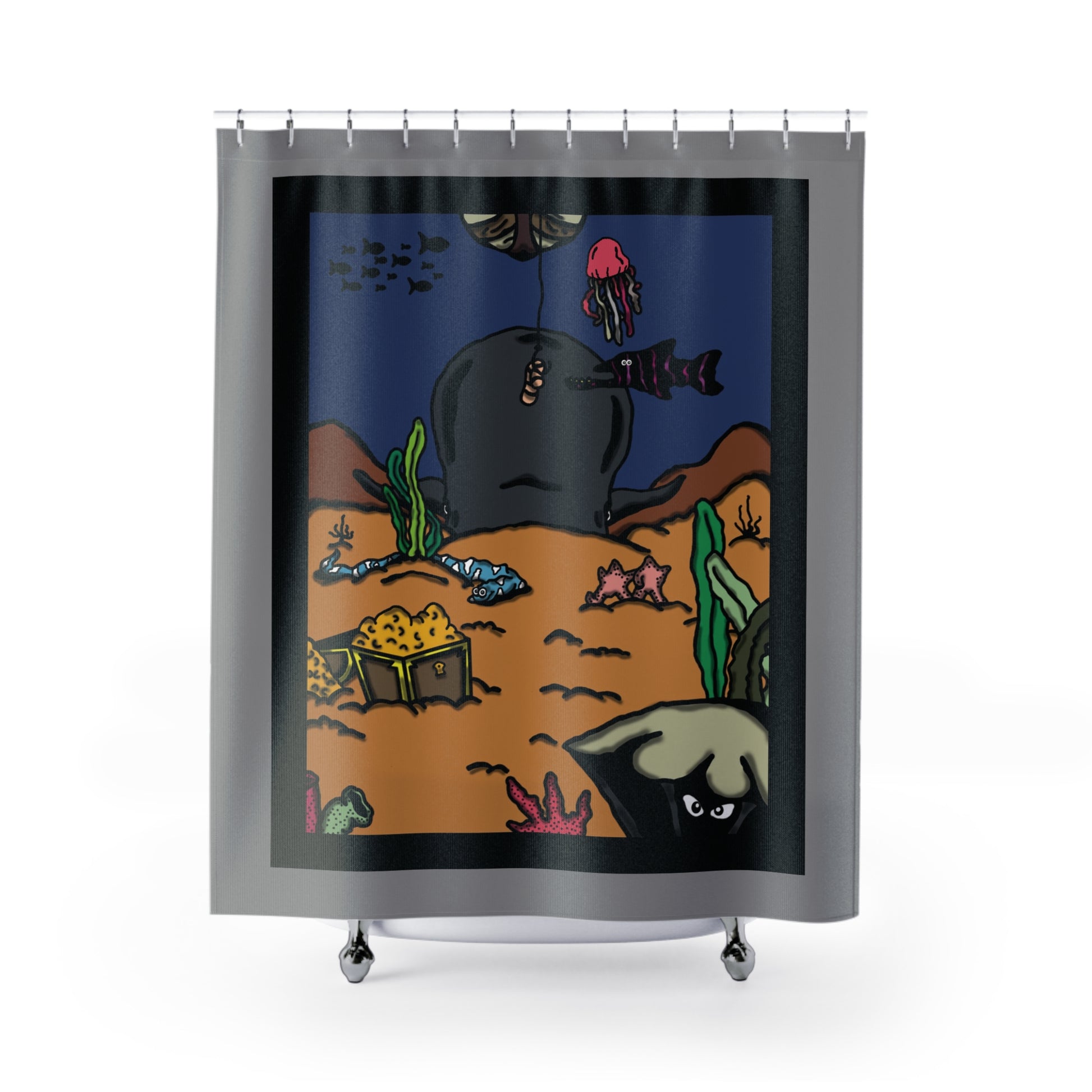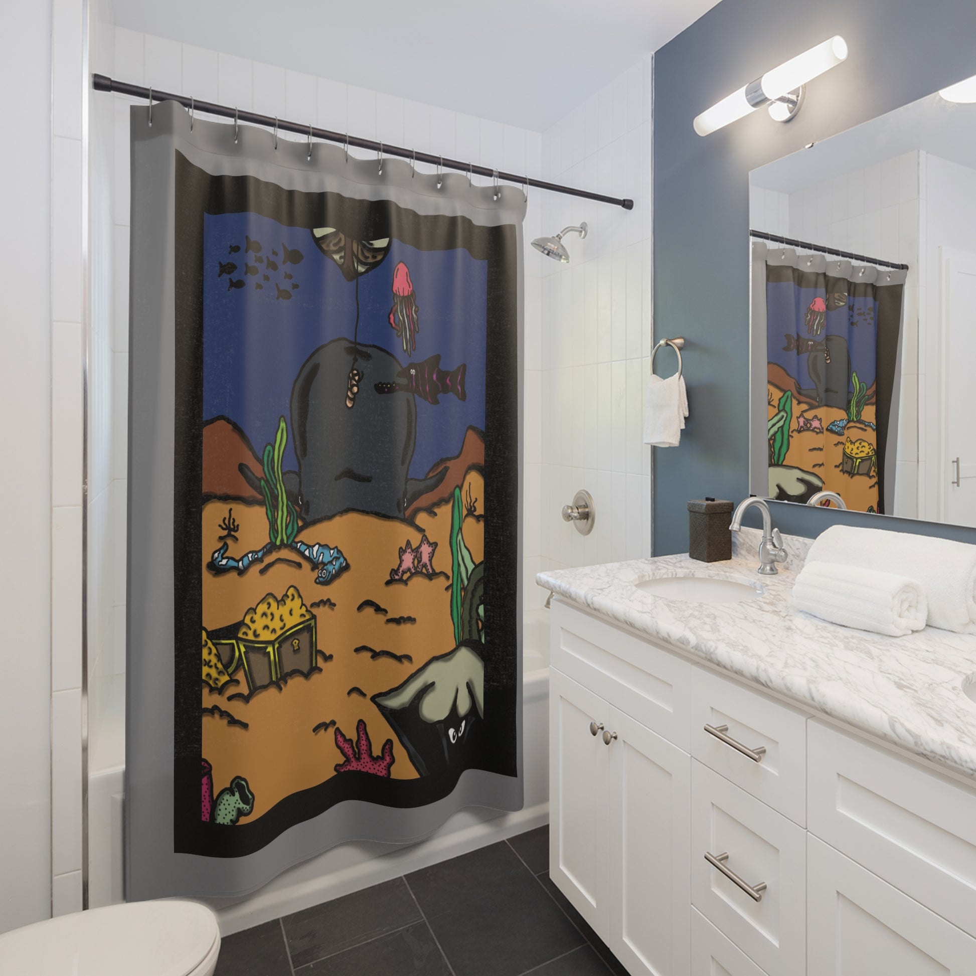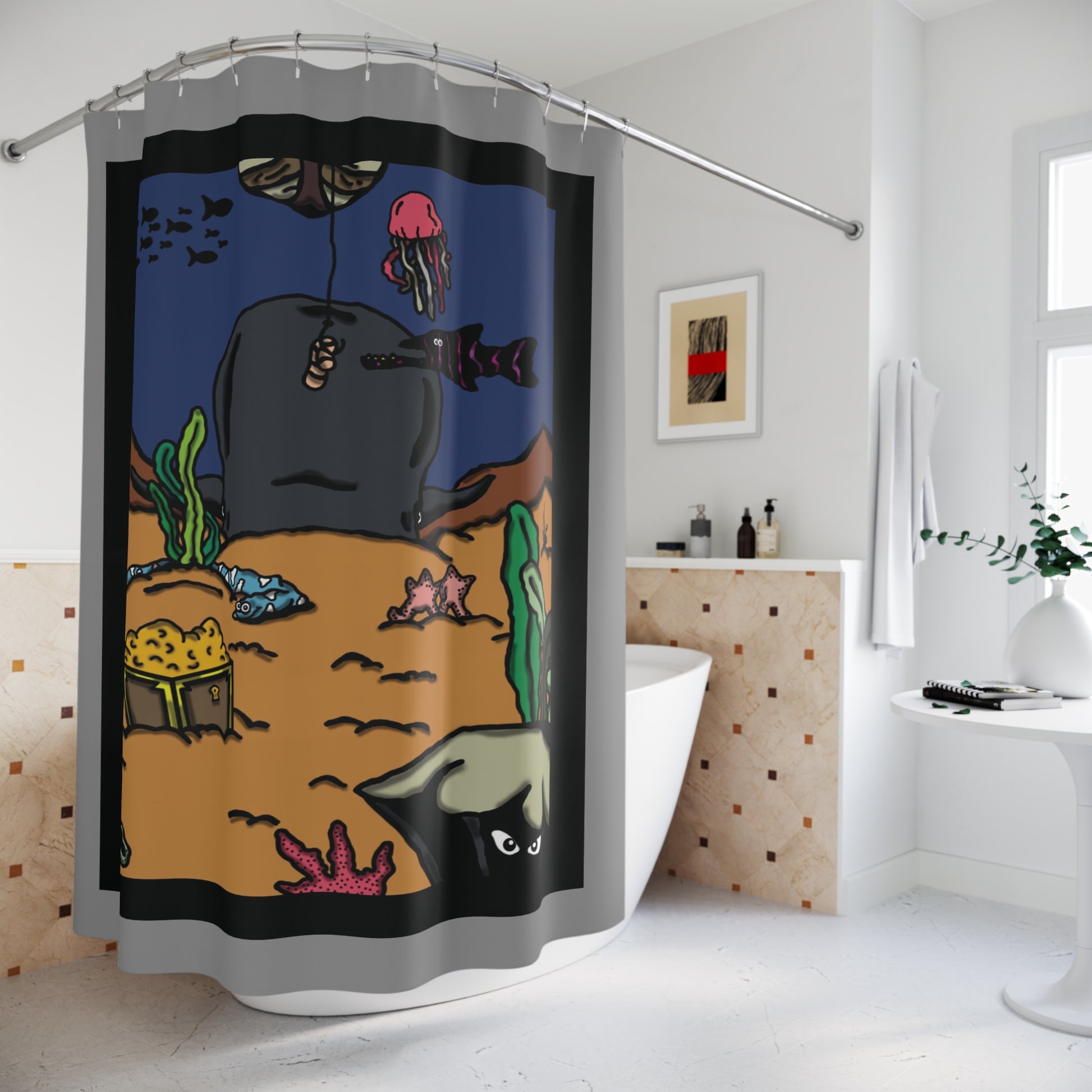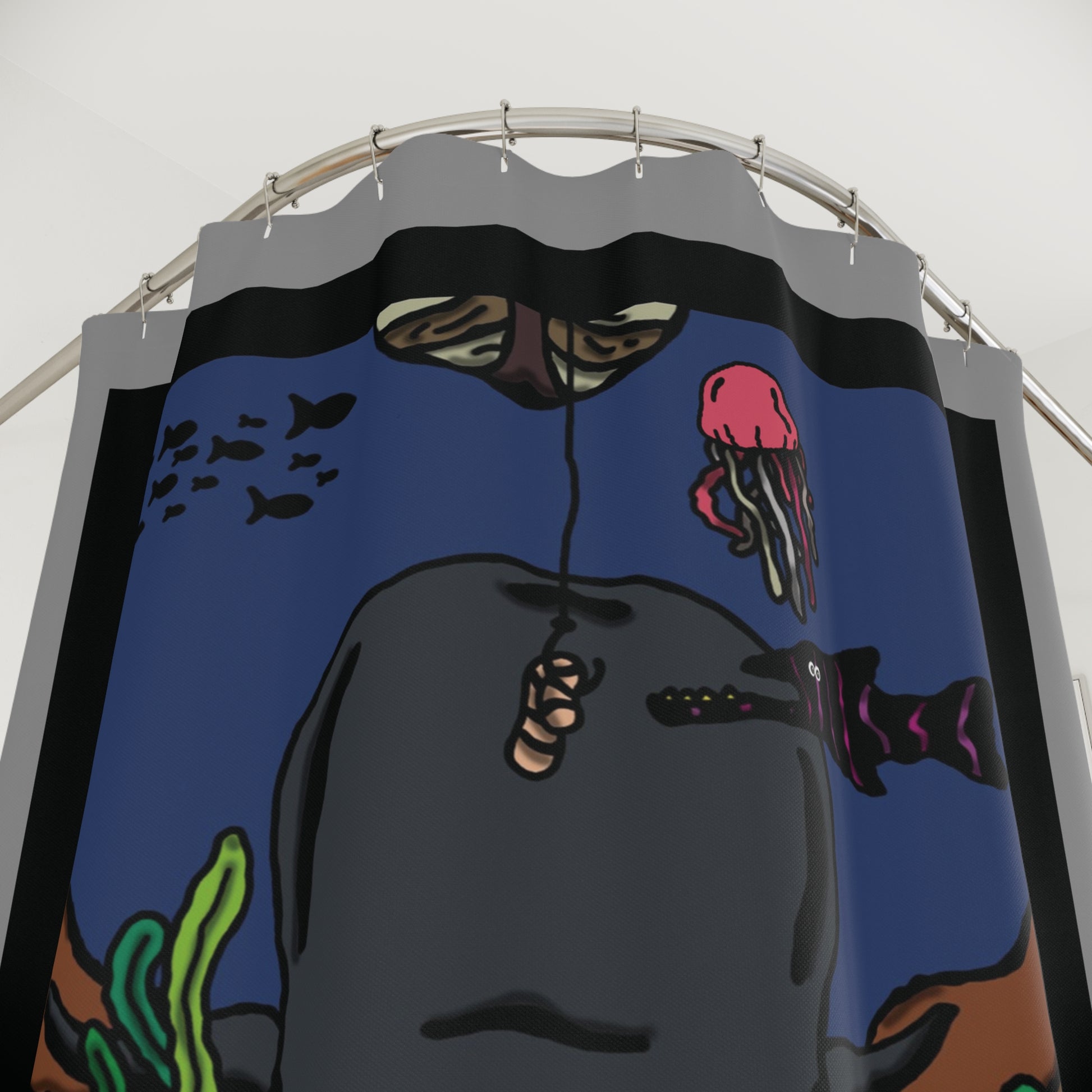 This shower curtain is here to add an original touch to any bathroom. Made with highly durable polyester, this curtain stays like new for a long time to come.